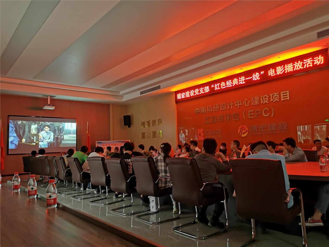 5月7日晚6點,漢陽市政博宏公司黨支部開展“建黨100年,光影映初心”電影播放活動,將紅色電影帶進公司中南科研設(shè)計中心項目部,50余位黨員群眾共同觀看“建國三部曲”系列電影之《建軍大業(yè)》,一起追憶紅色故事。